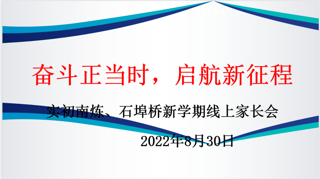 暑气已消,秋雨微凉。为进一步促进家校携手,形成教育合力,助力孩子们安全、健康、快乐的成长,建立融洽的亲子关系,营造和谐的教育氛围。2022年8月29日至8月30日晚上,栖霞区实验初级中学石埠桥校区八、九年级师生和家长们相约云端,共同参与“奋斗正当时,启航新征程”——2022-2023学年第一学期线上家长会。