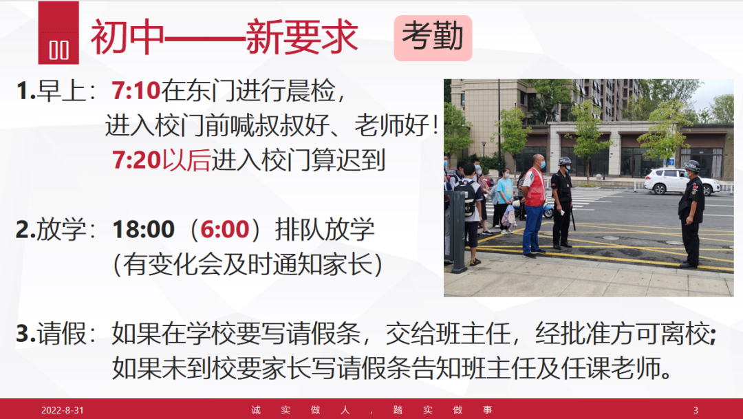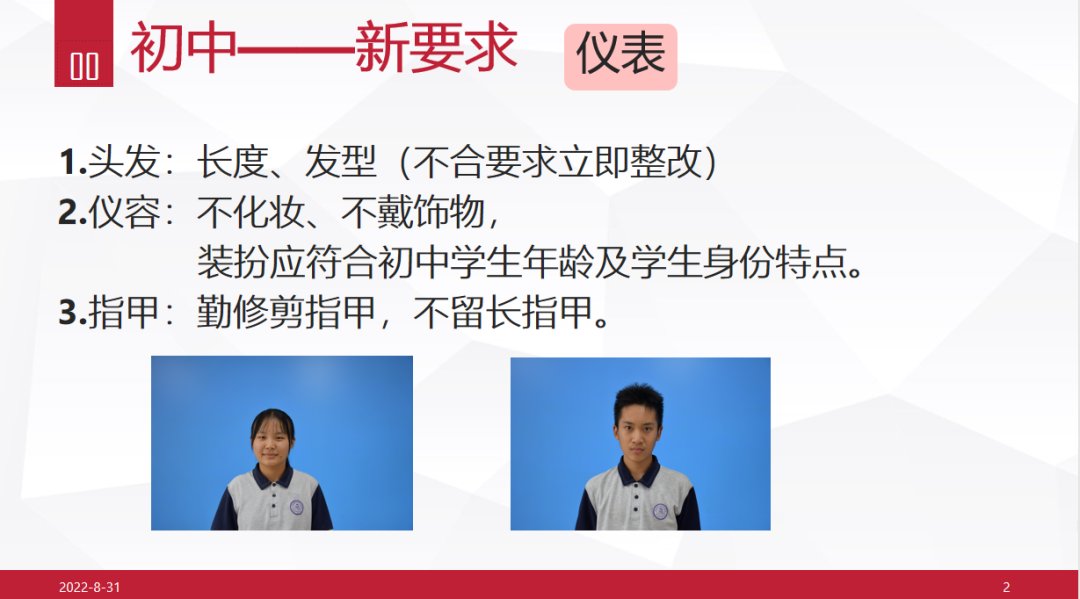 初中不是小学的简单继续,而是一种转折和爬坡—— 生活常识告诉我们:当迅速行驶的汽车在转弯或上坡时,缺少心理准备的乘客很容易站立不稳摔倒,同样在初中新生活开始的时候,如果我们缺乏心理准备不能及时调整的话就会出现不适应。为了让同学们迈好初中第一步,我们期望同学们能重新定位打造自己 。而苏校长和俞校长的讲话很好地为初一新生指明了方向。