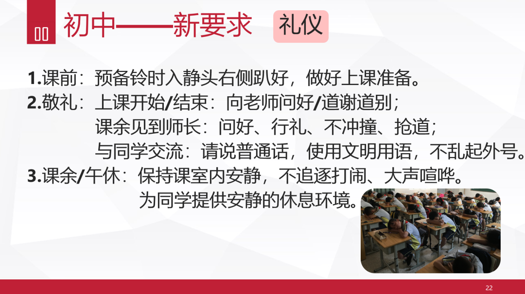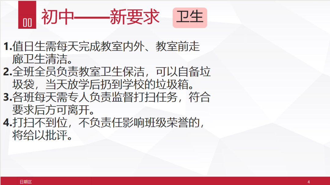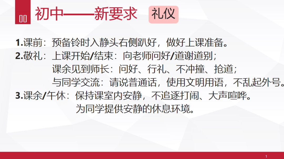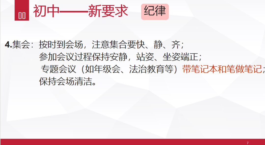 为了培养良好的学习习惯,我们对刚进入初中的新生,提出了以下新要求:
